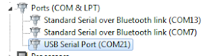 安裝完成以後,請記得自己的Serial Port!!(像我的就是21,如下圖)