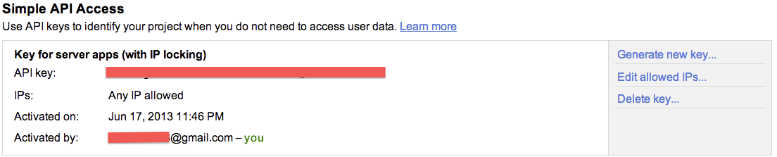 - 接著就會看到下圖中的API key,請記起來!