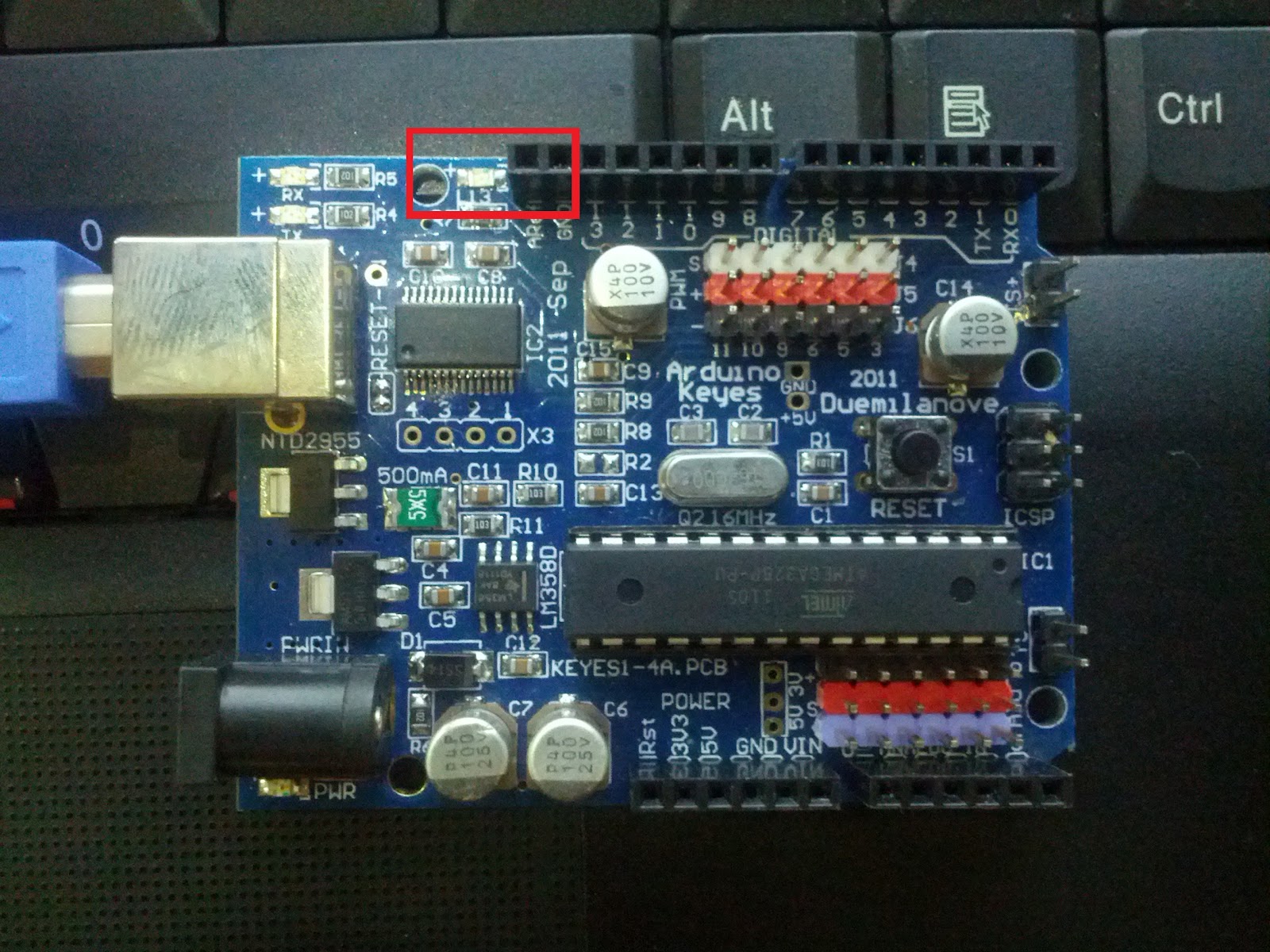 而這LED燈是連接到pin腳為13的pin上。如下圖